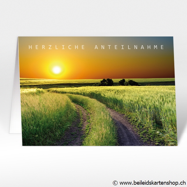 Beileidskarte "Der Weg" mit Sonnenuntergang und Kornfeld