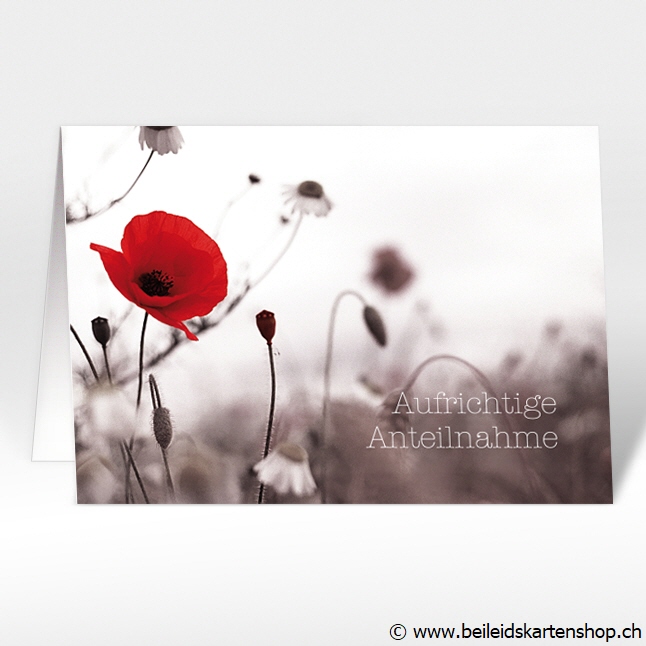 Beileidskarten 42032 Beileidskarten/Trauerkarten mit Mohnblumenfeld Beileidskarten mit Mohnblume Beileidskarte "Blumenfrieden" mit MohnblumenfeldFormat: A5 querPapier: weissOhne Eindruck Aktion war erfolgreich Das hat leider nicht geklappt. Warenkorb anzeigen Zur Kasse gehen Weiter einkaufen Einlageblatt: ohne Einlageblatt mit Einlageblatt weiss Couvert: ohne Couvert mit Standard-Couvert weiss Anzahl: Stk In den Warenkorb Beileidskarten 42044-2 Beileidskarten 42044