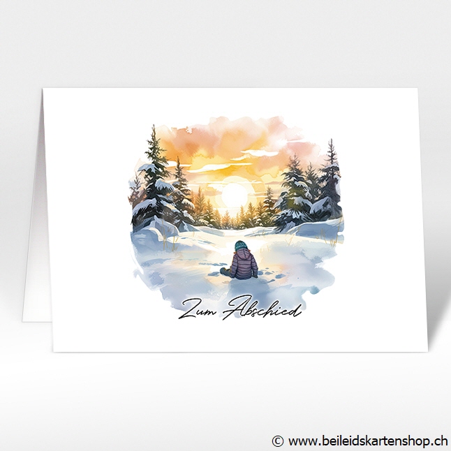 Beileidskarte "Winterlandschaft mit Sonnenuntergang"