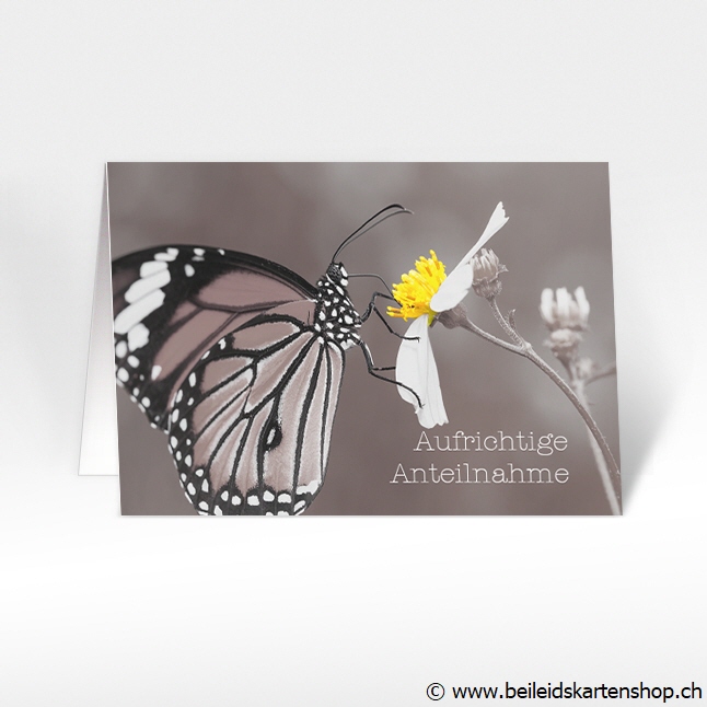 Beileidskarten mit Schmetterling auf Blume